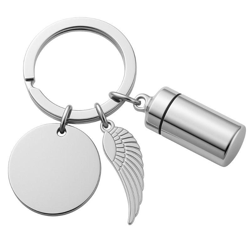 Fabricado con amor y cuidado, este llavero conmemorativo grabado es mucho más que un simple accesorio: es un recordatorio reconfortante del vínculo que siempre os unirá. Lleva tus recuerdos contigo cada día o regala este llavero personalizado con compartimento para cenizas a alguien que merezca una forma especial de mantener cerca a su ser querido.